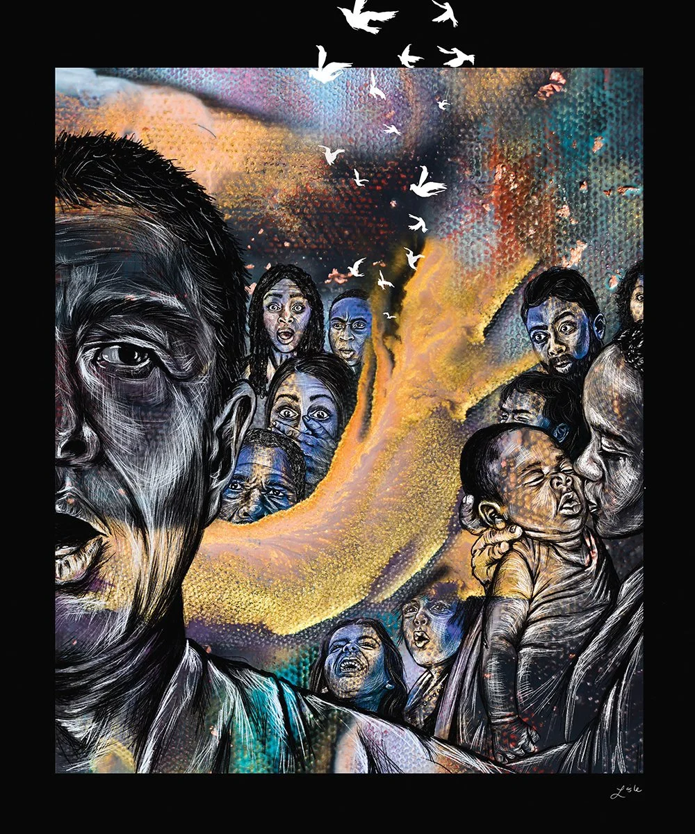 By Lisle Gwynn Garrity @sanctifiedart - Inspired by Luke 1:57-66 - Acrylic painting on canvas with digital drawing