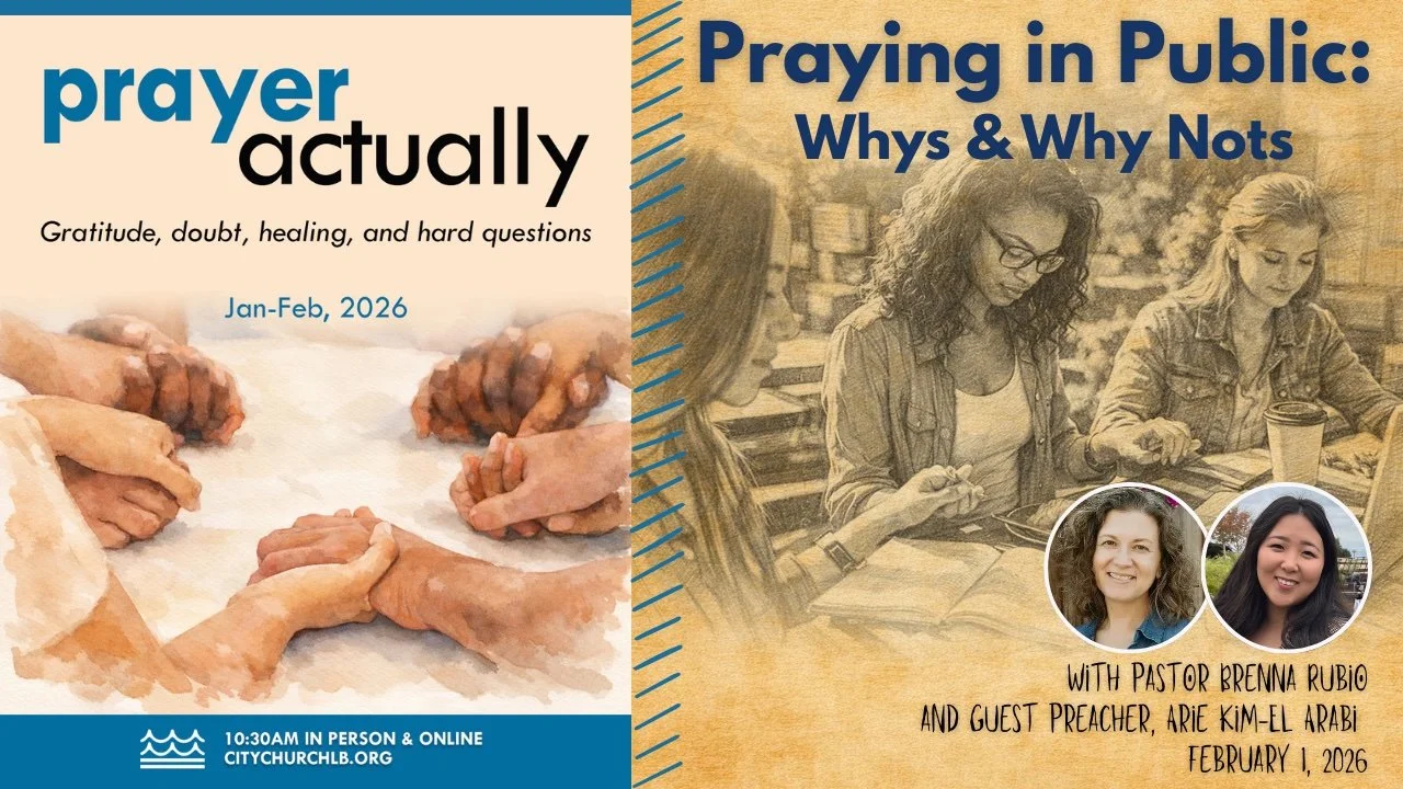 Prayer Actually: Praying in Public: Whys & Why Nots Prayer Actually: Matthew 6:5-5 - February 1, 2026 Arie Kim-El Arabi, Brenna RubioCity Church Long BeachFebruary 3, 2026Comment Facebook0 0 Likes